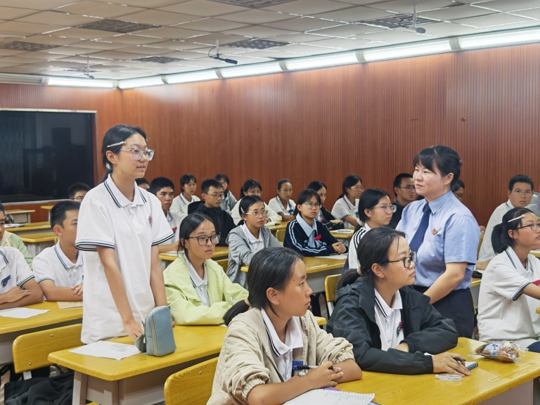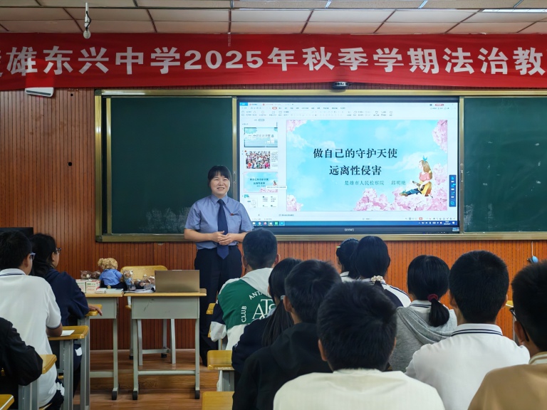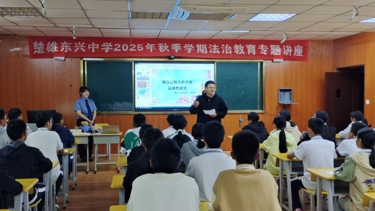 为切实筑牢校园安全防线,提升学生法治观念与自我保护能力,9月27日,楚雄东兴中学特邀楚雄市人民检察院第四检察部主任、楚雄东兴中学法治副校长邱明艳,开展以“安全防护+法治教育”为核心的主题讲座。活动由学校政教处和现教处共同组织,全校师生通过“现场聆听+班级直播”的形式同步参与,确保法治安全教育全覆盖。