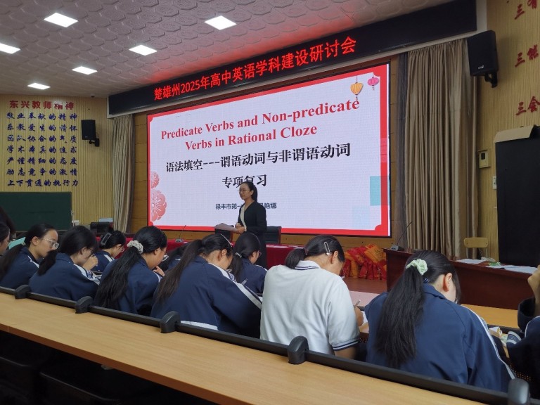 深秋的晨曦夹杂着丝丝秋凉透过窗户,在摊开的课本上投下斑驳的光影。在这个收获与沉淀的季节里,东兴中学作为楚雄州英语学科建设基地开展了第二届活动。本次活动以高考题型专项为重点, 邀请了六位州内英语教学能力精湛的一线专家教师展示优秀课例。州内18所学校的140余名高三英语教师参加了课例观摩和研讨。本次活动由楚雄州英语学科基地领衔人东兴中学教师饶英老师主持,东兴中学校长刘建忠、楚雄州教科所杨阳老师到会指导并对基地校建设提出期望。