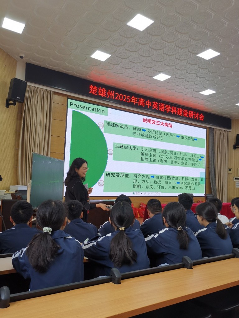 面对高考阅读理解中颇具挑战的C、D篇,来自楚雄州民中的邵丽芳老师在以“说明文解题策略”为授课内容,给出了破解之道——以结构分析为核心。邵老师聚焦高考阅读理解C、D篇常见的研究报告型、问题解决型与主题说明型三大文本类型,引导学生通过分析语篇结构快速把握文章脉络。以2024年新高考I卷D篇为例,学生通过识别“研究目的—方法—发现—结论”等部分,理解题目命制与文本结构的内在关联。同时,课堂内传达的“长难句简化”“关键词定位”“选项比对”等技巧,助力学生在复杂文本中精准提取信息,提升高阶阅读能力,让曾经令人望而生畏的说明文变得有章可循、有方可依。