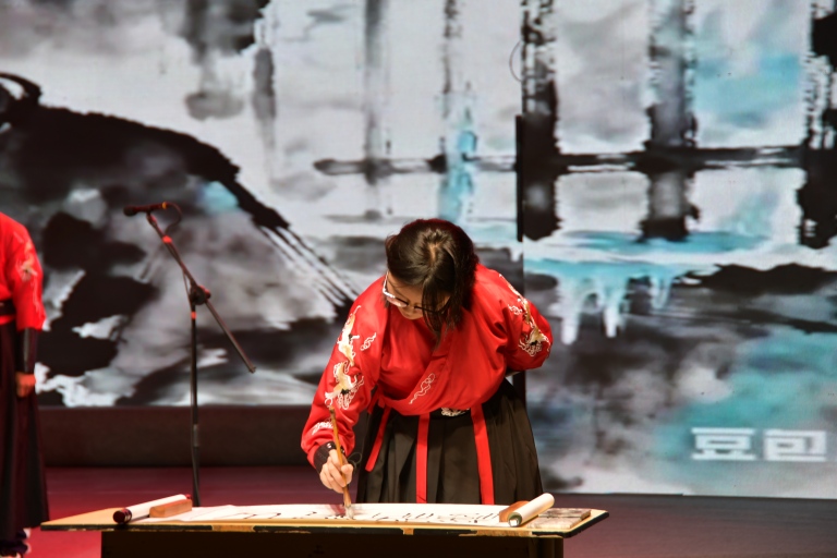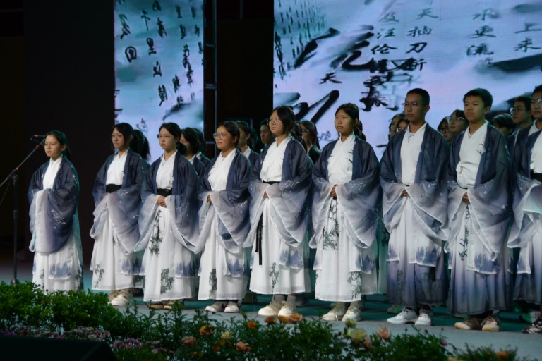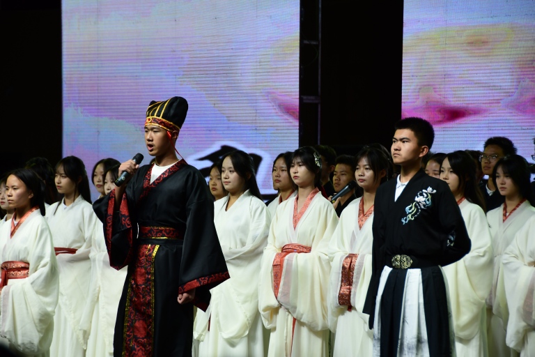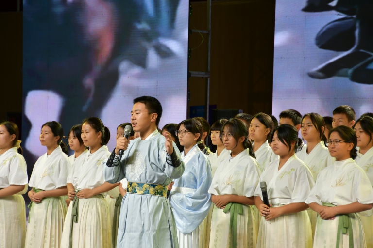 在校长的殷切寄语后,比赛画卷正式铺开。选手们以声音为舟,以情感为桨,带领观众畅游在华夏文明的璀璨长河之中。