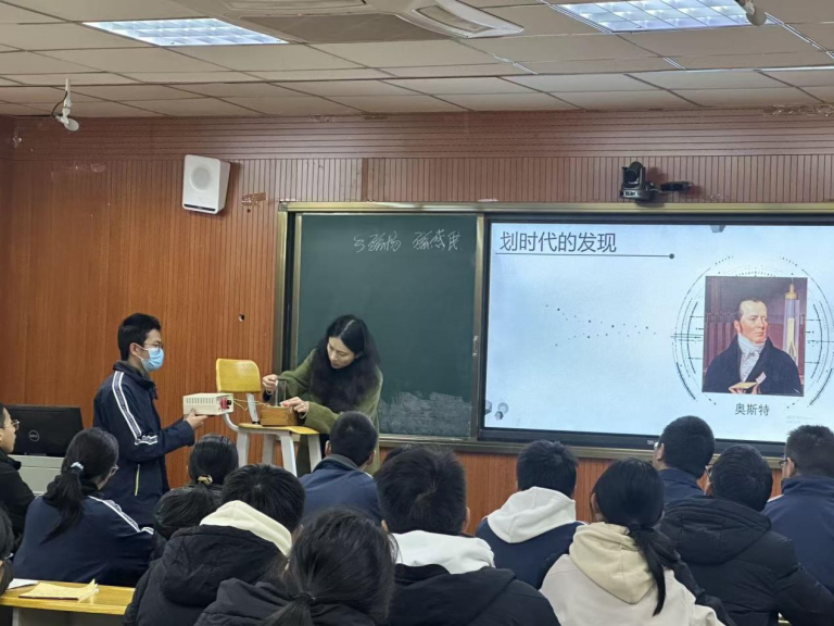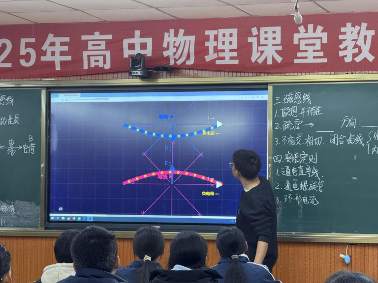 教学中,教师们充分利用现代信息技术,通过线上投屏实时展示学生的学习成果和实验数据,极大提升了课堂的互动性和实效性。还有教师创新运用AI智能模拟实验,将抽象的物理概念具象化,帮助学生构建直观的物理表象。更有教师展示精心自制的教具,以巧思妙想突破教学重难点,充分展现了年轻教师敢于创新、善于探索的教学特点。