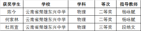 物理科目,陈今同学、何家林同学荣获二等奖!杜雨宣同学荣获三等奖!杨咏赋老师、段皓文老师荣获指导教师奖!