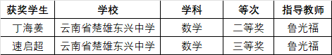 数学科目,丁海姜同学荣获二等奖!速启超同学荣获三等奖!鲁光福老师荣获指导教师奖!