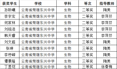 生物科目,李宇宏同学、何家林同学、孙聆曦同学荣获二等奖!韩天睿同学、刘铭浩同学、李杼嵘同学、刘文超同学、张琳同学、谭景隆同学、丁昱恺同学荣获三等奖!李萍芬老师、陶美老师、徐春梅老师荣获指导教师奖!